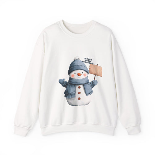 Snowman Crewneck Sweatshirt – Cute Winter Snowman Holding Sign Graphic